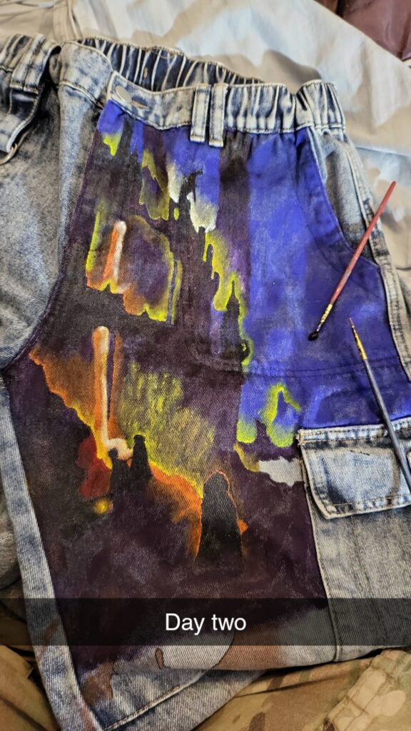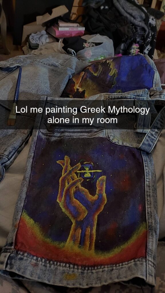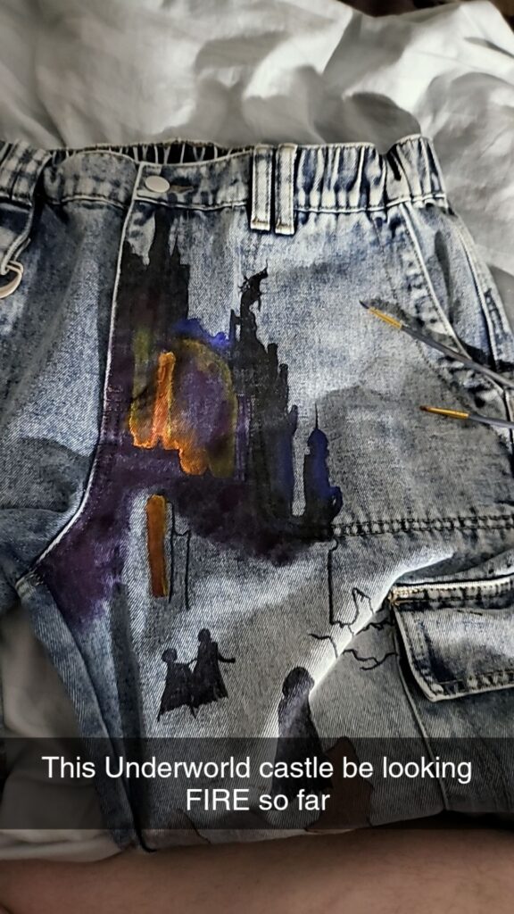 Eventually, I’d like to go back and paint Olympus on a pair of pants, but I’m unsure if I could recreate the same beauty of the Underworld twice.